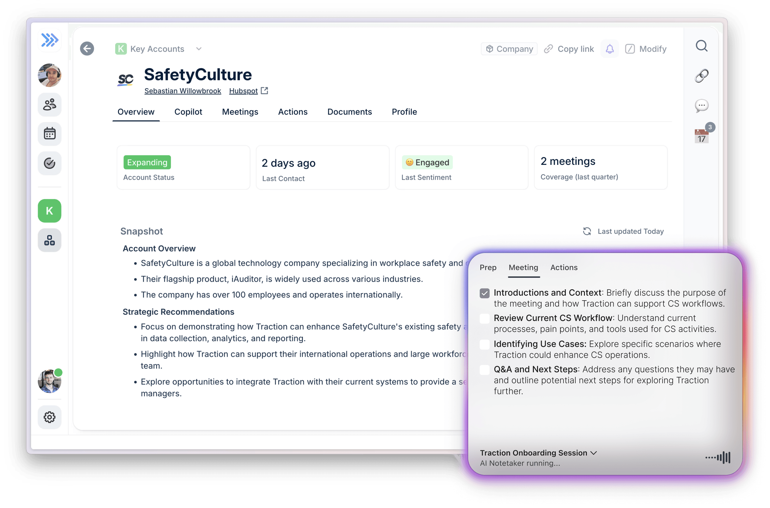 Understand customer history, feedback, insights, opportunities at account-level, not meeting level.
